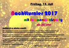 Am kommenden Freitag, den 14. Juli findet ab etwa 20 Uhr wieder das beliebte Nachtturnier auf Platz 1 der Anlage des TCL statt. Eingeladen sind natürlich alle Mitglieder, die einen Schläger halten können und einigermaßen gut zu Fuß sind. Beim Schlangenlauf spielt das noch keine große Rolle. Aber wenn beim Rundlauf nur noch drei Teilnehmer übrig sind, sind neben einer ausgefeilten Taktik auch schnelle Beine gefragt. Die Einladung gilt auch für die Mitglieder unseres TeG-Partners, dem Tennisclub rechts der Iller. Ein späterer Einstieg ist jederzeit möglich. Und wer nur zuschauen möchte, ist auch herzlich willkommen. Für Speis und Trank ist wie immer gesorgt. Jetzt hoffen die Verantwortlichen natürlich auf gutes Wetter, dann wird es sicherlich wieder eine nette Veranstaltung.